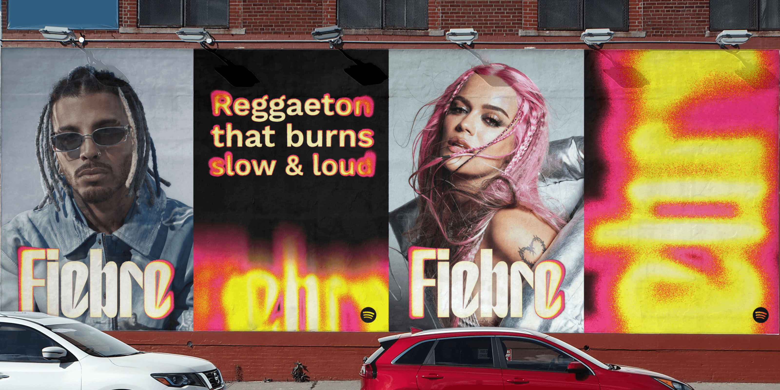 Fiebre is a theoretical Spotify playlist for reggaeton hits of Summer 2025. Conceived as a celebration of presence, sound, and movement, the project imagines the playlist as a living identity rather than a static cover.