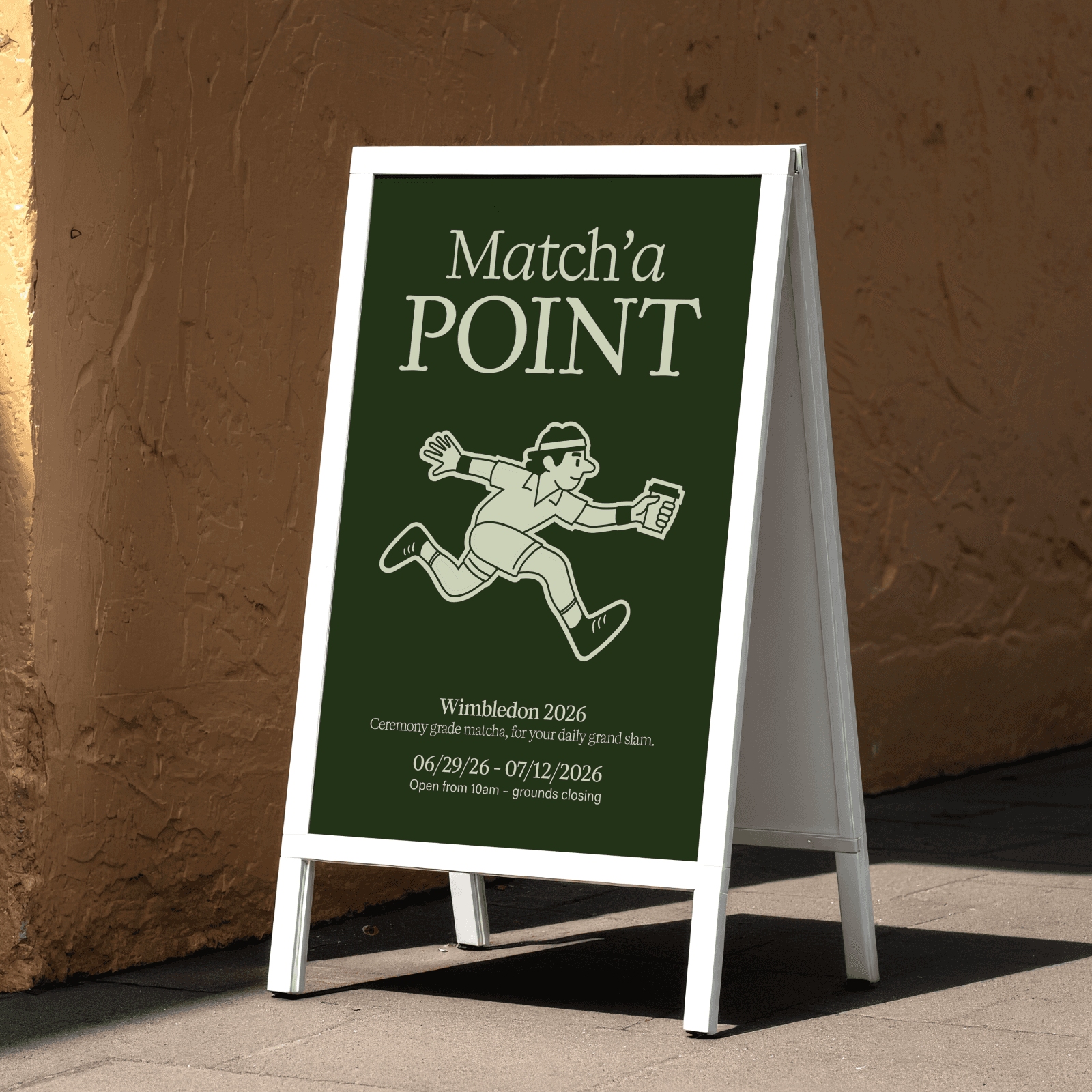 Created in response to an RFP, Matcha Point imagines a premium matcha pop up for Wimbledon 2026, where the energy and playfulness of tennis meet a contemporary brand that honors British heritage.
